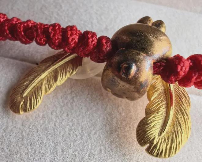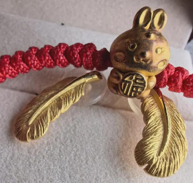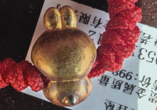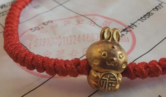 黄女士的女儿前后戴了大约一个月,开学前夕,穿小金兔的红绳子突然断裂。2023年4月2日,黄女士带着小金兔,再次来到这家老庙黄金,请店员重新编织了一根红绳子。遗憾的是,二次编织的红绳手寸有点大,黄女士的女儿不合手腕。